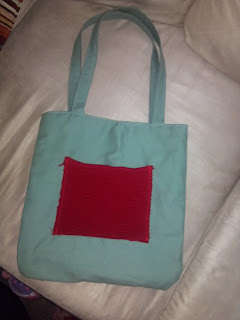 I felt bad about this one. Last year I made aprons for my MIL. I had promised to make some for my mom, but have yet to get around to it. I really wanted to get them done for Mother's Day, but with no extra cash and very little time (Ellie's birthday is the same weekend as Mother's Day and I'm already behind) it just wasn't going to happen. I rifled through my ridiculous stash of fabric (seriously, I have so much fabric) and found enough to make a tote bag. Then I found this fabulous pattern for free (yay!) and got to work. I literally made this during Ellie's nap, which time leftover to relax. It was so fast and so simple. I added the pocket using a placemat because it the only piece of fabric in my entire house that was the color I wanted (and I love that it adds a different texture).